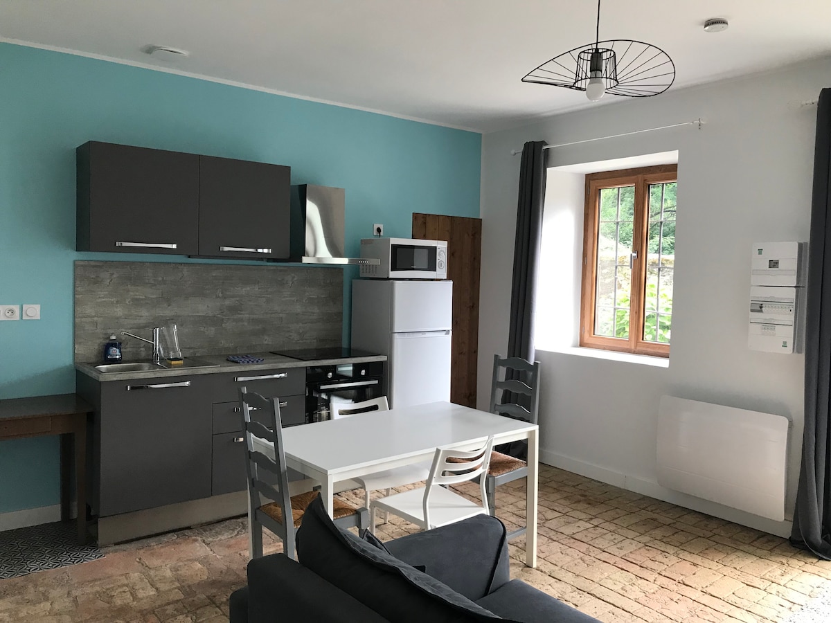 Appartamento/monolocale al piano terra in una casa piena di fascino all'ingresso del vecchio villaggio. Appartamento/monolocale nuovo con tutti i comfort necessari per trascorrere un piacevole soggiorno in tutte le stagioni. È composto da un bagno indipendente (6mq) con doccia, lavabo, WC sospeso, asciugamani/radiatore e lavatrice. Una sala principale di 32mq con cucina attrezzata, soggiorno con divano letto, TV e WIFI e una zona notte con letto matrimoniale. Asciugamani, biancheria da letto fornita, riscaldamento a pellet