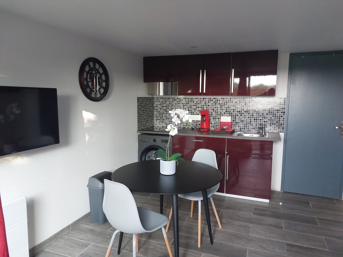 Per un weekend, per qualche giorno di vacanza o per una settimana in viaggio di lavoro venite a riposare in questo grazioso monolocale nuovo di 25m2 completamente attrezzato. Costruito al piano terra di una casa in stile Nantes, questo monolocale ha tutto il necessario per trascorrere qualche giorno in tranquillità grazie al suo recente isolamento di qualità L'alloggio è seminterrato lato giardino (finestra camera da letto) e al piano terra lato strada (grande porta vetrata) parcheggio gratuito in strada Smart tv Wifi