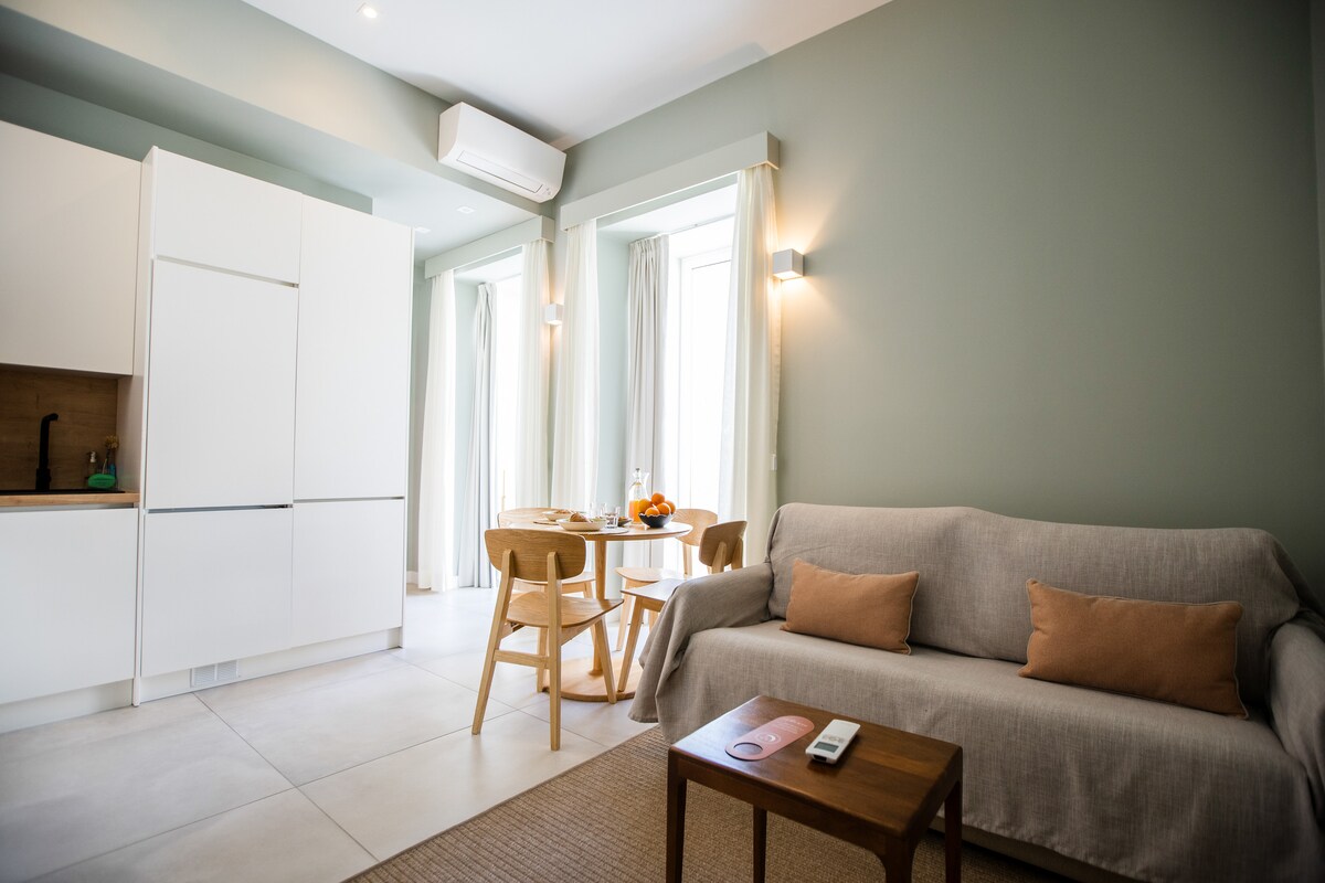 Siamo appartamenti con servizio di pulizia giornaliero e aria condizionata. Questo appartamento dispone di una camera da letto e può ospitare 4 persone: due letti singoli o un letto matrimoniale nella camera da letto e sul soggiorno un divano letto matrimoniale dove può ospitare 2 persone. È un luogo nuovo di zecca, genuino, confortevole ed elegante che ispira l'esplorazione e ti fa sentire come a casa. Questo appartamento nel centro storico di Lagos offre una piscina in comune, un solarium all'esterno e un tetto. Può avere un balcone privato o condiviso.