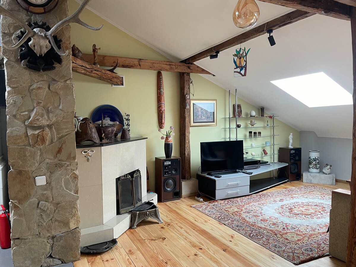 Offriamo un accogliente attico nella parte vecchia della città, con interni in stile ucraino antico. L'appartamento dispone di due camere da letto e di un ampio soggiorno, di una piccola cucina e di un bagno. Tutto a 5 minuti a piedi dal centro!