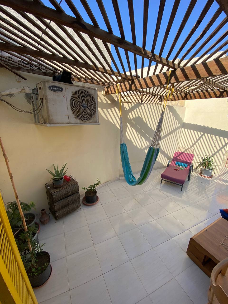 Welcome to our peaceful hideaway in Maadi, Cairo's greenest and most tranquil district. Designed for relaxation and connection, this home is for those who want to unwind after a day of exploration. Featuring a private garden with a beautifully designed outdoor kitchen and patio, perfect for enjoying meals, coffee, or evenings under the open sky. An inviting area with skylight shading allows natural light to fill the space while keeping it comfortably cool.