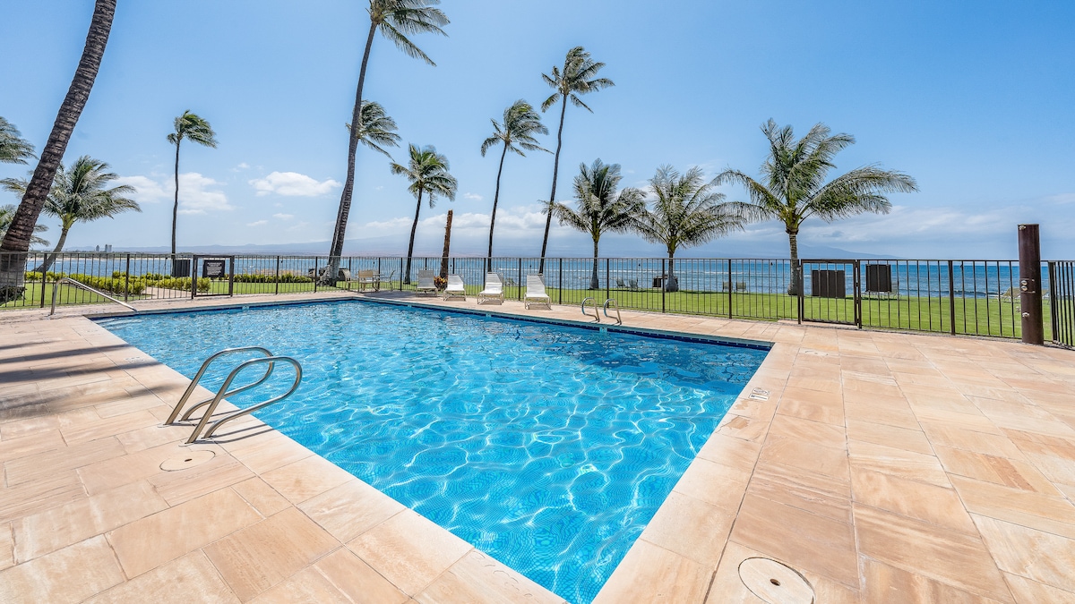 Vista diretta sull'oceano al 4 ° piano con ampio lanai. Cucina appena ristrutturata, pavimenti in legno massello in tutto l'appartamento. La camera da letto principale ha un materasso a pedali tempur. Il soggiorno ha un divano letto con materasso in memory foam. A pochi passi da negozi, ristoranti, attività escursionistiche e dal centro oceanico di Maui. Posizione centrale, con facile accesso a Kihei, Lahaina e a 20 minuti dall'aeroporto. Sei proprio sull'oceano!