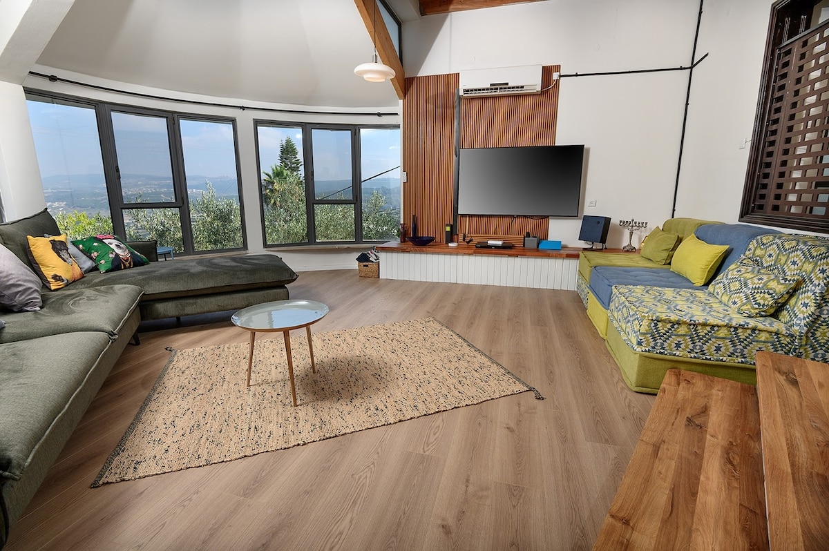 Questa baita è una casa privata, situata al centro di un bellissimo giardino da un lato e dalla natura selvaggia dall'altro. La cabina è circondata da montagne panoramiche, con una splendida vista panoramica sulla baia di Haifa e sulla linea costiera delle spiagge settentrionali. Questa baita è perfetta per coppie, piccole famiglie o persone che viaggiano da sole.