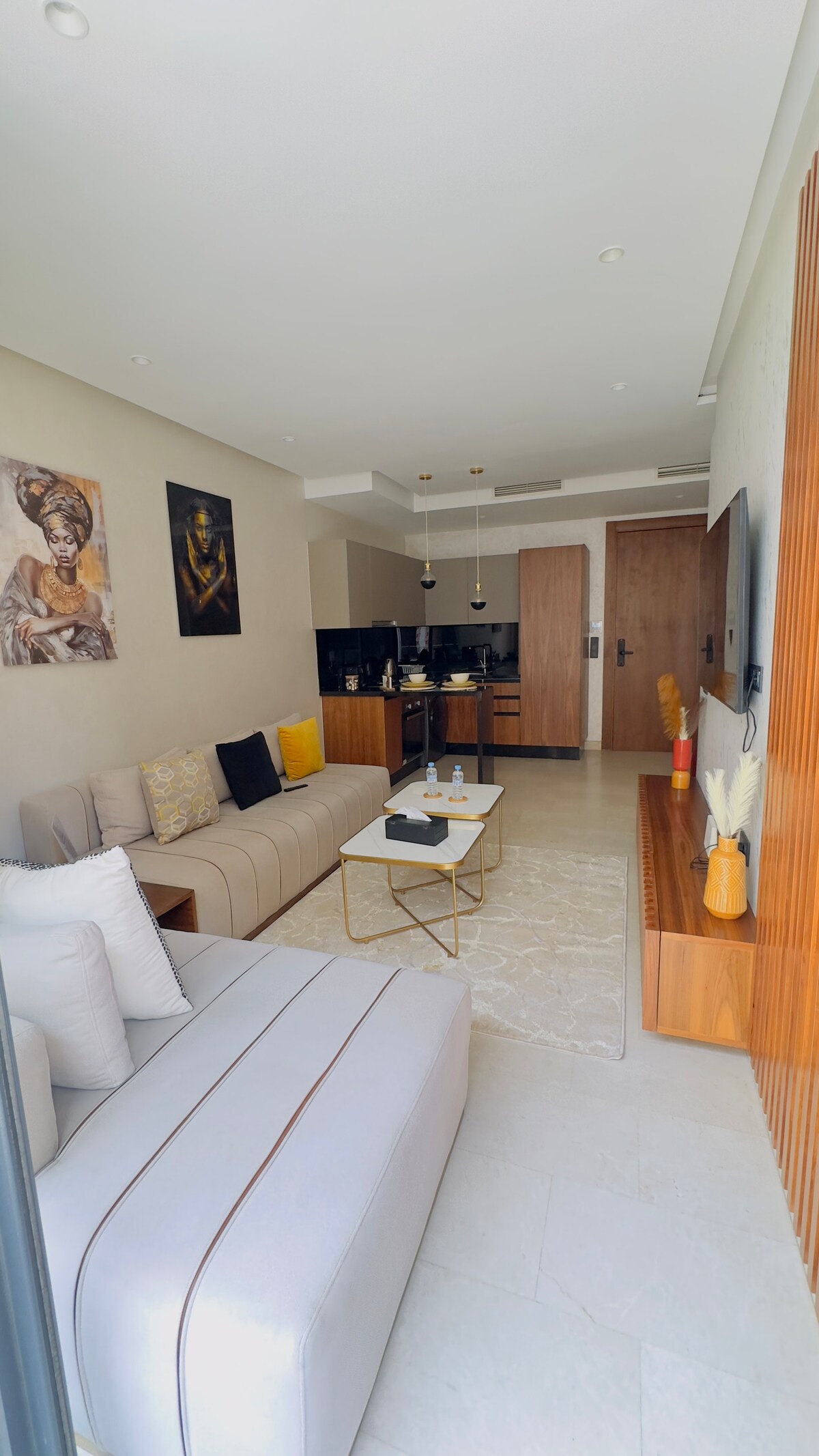 Scopri la perfetta combinazione di lusso e comfort in questo elegante monolocale situato nel cuore di Casablanca. Ideale sia per chi viaggia per lavoro che per chi viaggia per lavoro, questo spazio moderno dispone di una cucina completamente attrezzata, di una zona lavoro dedicata e di una terrazza privata per il caffè mattutino o il relax serale. Rilassati nell'ampia zona giorno con finestre a tutta altezza che inondano lo spazio di luce naturale, oppure approfitta della palestra in loco per rimanere attivo durante il tuo soggiorno.