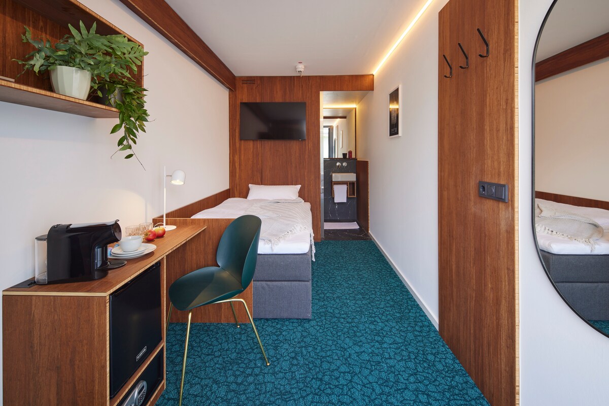 Benvenuti al TIN INN Erkelenz, il nostro concetto di hotel sostenibile costruito con container di spedizione riciclati. Goditi camere confortevoli e di alta qualità dal design minimalista, senza fronzoli inutili. Il tuo soggiorno è digitale al 100%: check-in e check-out tramite smartphone, sblocca la tua camera con un clic e sperimenta un'ospitalità moderna e senza contatto progettata per la massima comodità e flessibilità. Inoltre: la tua impronta di CO2 a notte sarà pari a 3,8 kg di CO2e solo se soggiorni al TIN INN Erkelenz.