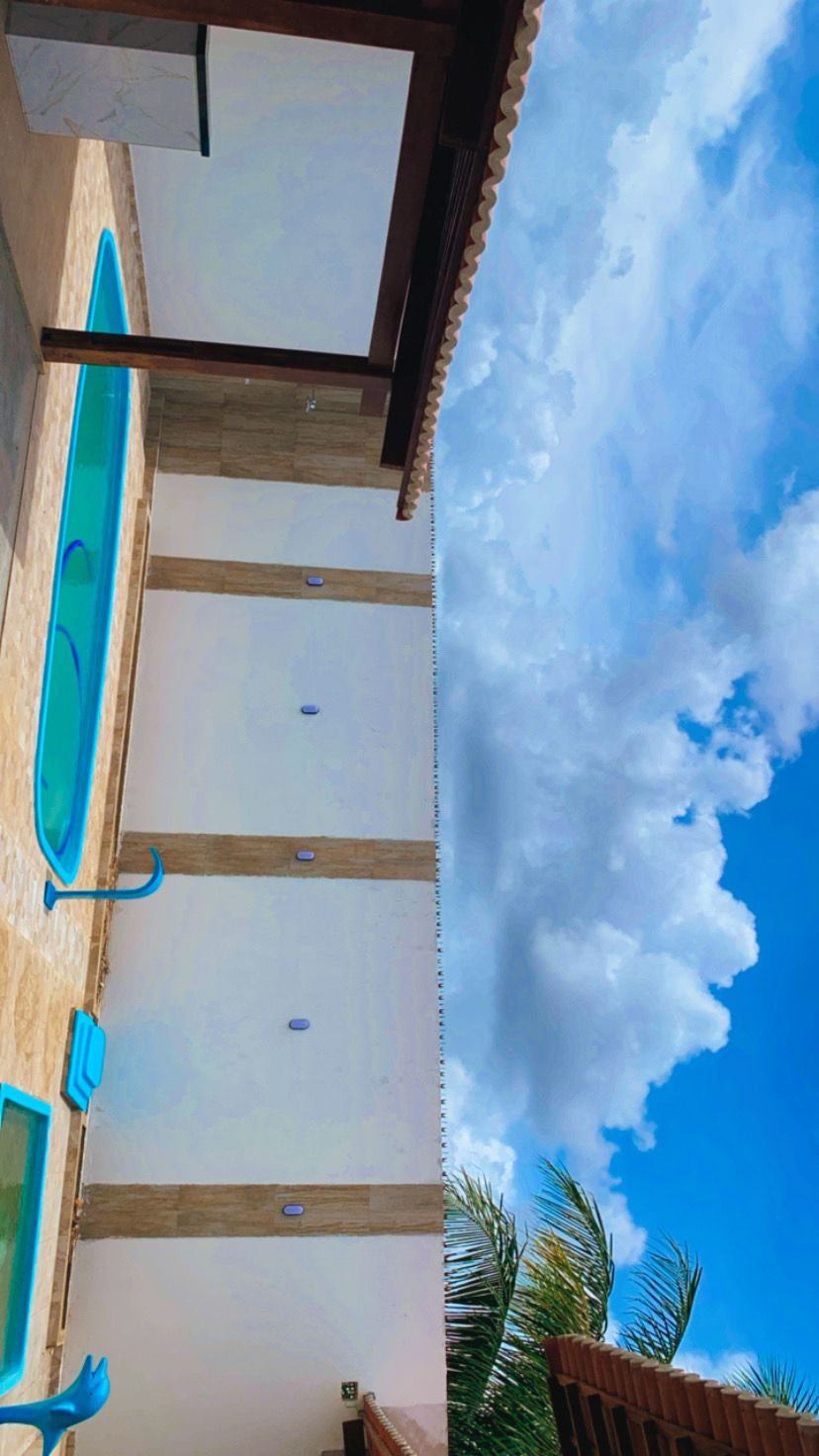 Casa com 4 suítes com ventiladores, cozinha totalmente equipada, churrasqueira, varanda inferior com espaço para redes e wifi. A casa está localizada no condomínio Palm Springs que conta com uma ampla área de lazer e segurança.