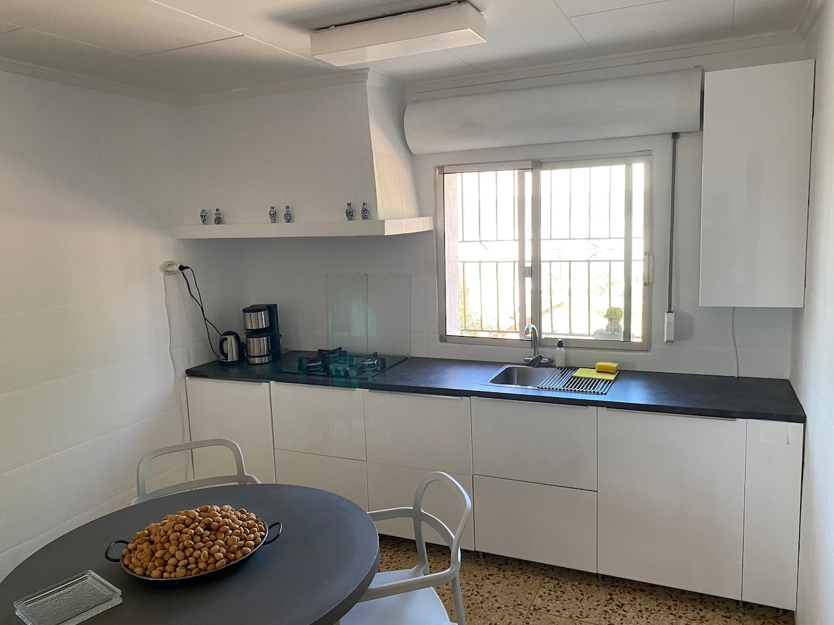 A soli 25 minuti di auto dall'aeroporto, questa casa indipendente ecologica con 4 camere da letto si trova su una collina con una vista spettacolare! L'intera casa è stata ristrutturata nel 2020 e ha un aspetto fresco, nuovo e moderno. Tra le altre cose, si affaccia su un uliveto privato e una grande riserva naturale. In 30 minuti di auto si raggiunge il centro di Valencia e in 40 minuti la spiaggia. Goditi la tranquillità, la vista, le 7 terrazze, la natura e le varie oasi balneari nelle vicinanze.