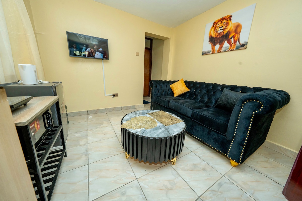 A hidden gem located at Syokimau , own compound, 30 min from JKIA ( international airport), SGR & Signature Mall with serene landscape and luxe decor that offers a relaxing getaway experience for both business and leisure. - Free Wi-Fi - Rooftop relaxation zone - Electric fence & CCTV - On site purified spring bottled drinking water ( Nadora waters) - Outdoor relaxation zone - Unlimited solar energy electricity - Solar heated showers - Unlimited water (onsite borehole) - 24/7 onsite host