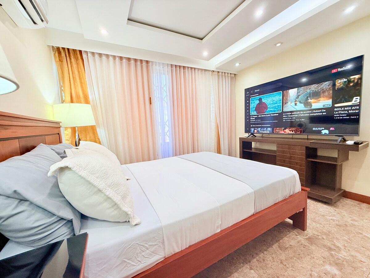 Questo moderno ed elegante appartamento offre tre spaziose camere di lusso, ognuna dotata di comodi letti: un letto king-size, un letto queen-size e un letto matrimoniale. Tutti gli spazi sono completamente nuovi, compresi i bagni di lusso, che offrono una sensazione di relax e comfort. La cucina è completamente attrezzata con tutti gli utensili necessari per poter preparare i tuoi pasti preferiti. Goditi momenti di intrattenimento con TV da 80 e 55 pollici.
