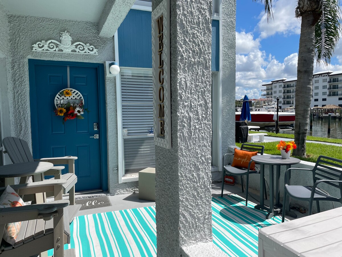 La palestra, la vasca idromassaggio e la vasca idromassaggio sono temporaneamente chiuse (danni da uragano) Completamente ristrutturato, decorato a tema marittimo, un appartamento al secondo piano splendidamente arredato a pochi passi dalla spiaggia di sabbia bianca e setosa! Ideale per vacanze romantiche, fughe in luna di miele e soggiorni! Situato nel Madeira Beach Yacht Club, una comunità privata recintata, offre parcheggio gratuito, wifi ad alta velocità, TV via cavo, Netflix, 2 piscine all'aperto riscaldate e moli per la pesca. Prenota almeno 7 giorni prima del tuo arrivo