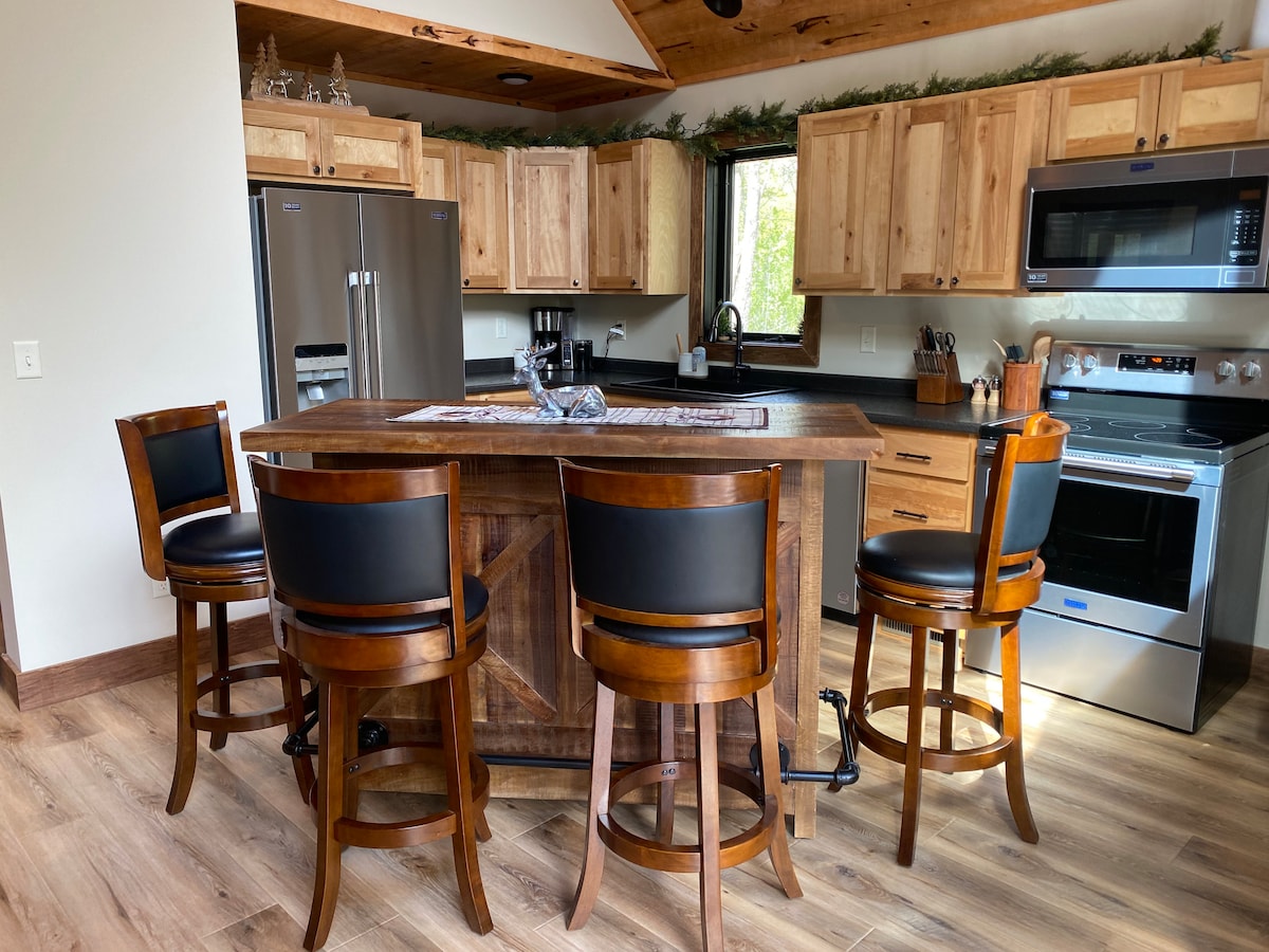Built as a winter or summer escape for a couple or small group, this beautiful four season cabin is a great way to experience the Northwoods of Wisconsin in a modern, well-appointed, aesthetically rich space designed with relaxation in mind This cabin was built in 2021 and host is 13 year "superhost" This is a default "no pets" cabin, however exceptions can be made with permission and a fee. Inquire with host. NEMA 15-40R outlet provided for level 2 EV charging. You bring chord and adapter.