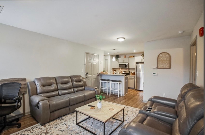 Our 2-bedroom 2-full bath apartment is furnished with a King bed in the primary room and Queen bed in secondary room with 43' smart TVs in both bedrooms. The common space has a 50' smart TV, dining table for 4, love seat, and 2 accent chairs. It has everything you need for a comfortable stay! The kitchen is stocked with cookware for meals, coffee, and tea maker to enjoy a fresh cup of coffee or tea. Anything in the apartment is yours to use. Make yourself at home once you arrive.