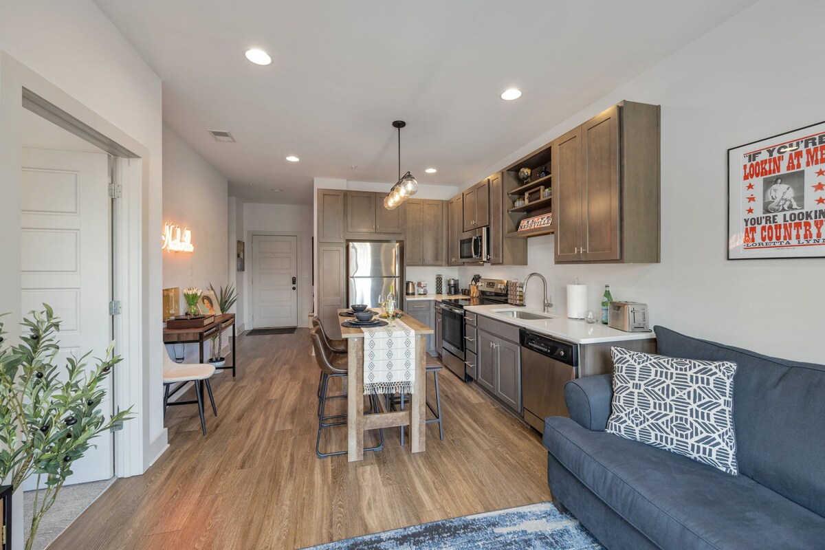 Immergiti nella vibrante energia di Nashville in questo elegante appartamento con una camera da letto, a pochi minuti dal leggendario brusio di Broadway. Questo elegante rifugio di lusso unisce magistralmente un design sofisticato a un comfort accogliente, ideale per fughe romantiche o per chi viaggia per lavoro e ha bisogno di una base raffinata e senza problemi. Ogni dettaglio curato assicura un soggiorno impeccabile e di alto livello, con attrazioni iconiche, ristoranti e musica dal vivo a portata di mano.