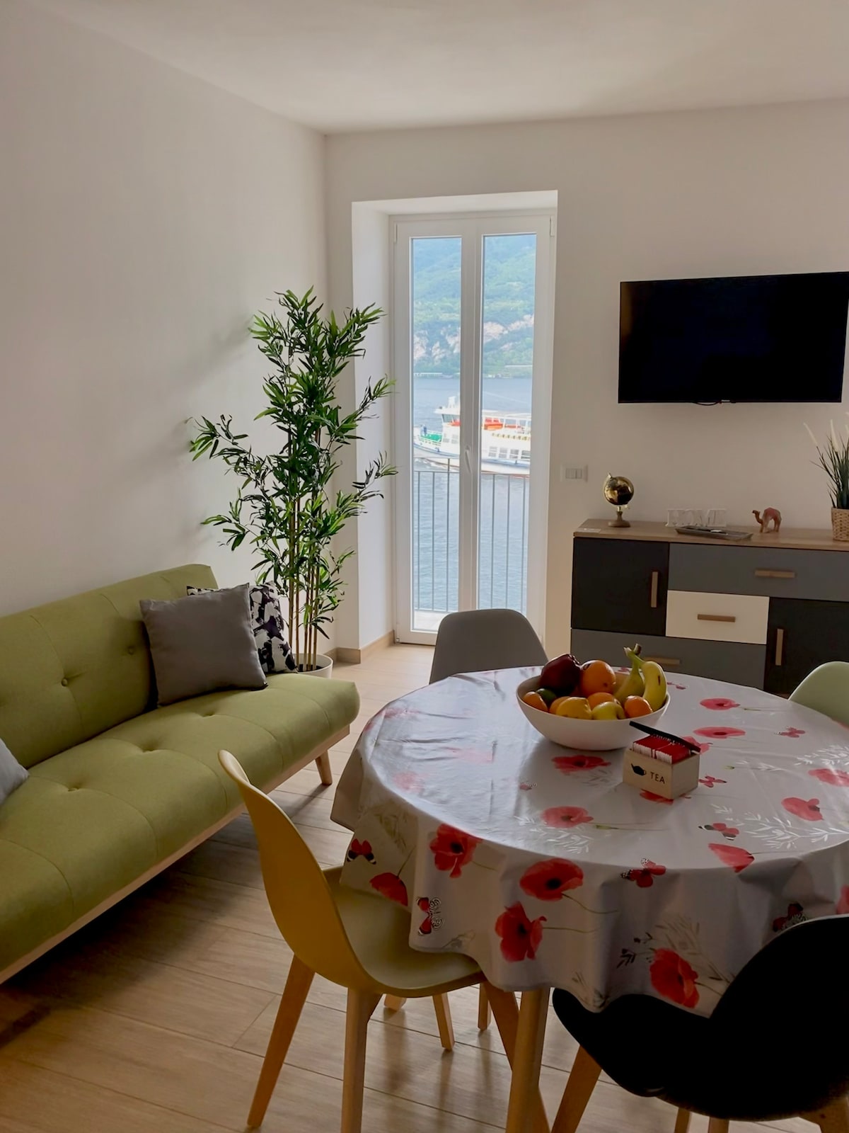 Unobstructed lake views from a beautifully restored 1800s apartment, perfectly positioned on the lakefront promenade of Lenno, Tremezzina. Just 200 meters from the ferry stop with direct connections to Bellagio, Varenna, Villa Carlotta and the medieval walled city of Como. An easy walk to both Villa Balbianello and Villa Balbiano. Unwind with friends over an aperitivo in the elegant living room, featuring original 1920s stucco ceilings, as curtains drift in the lake breeze. Pure Como living.