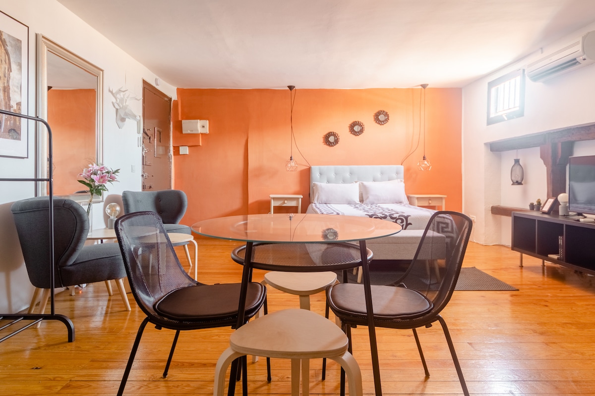 Cozy and well-designed 1 double bed studio with a small terrace, completely refurbished ( Nov 2018) with high standard and contemporary furnishing. Up to 2 people + baby cot if needed. Located in a quiet area of La Latina, close to Palacio Real, Plaza Mayor, Puerta del Sol and Barrio de las Letras. WIFI, Smart TV, hitting and air conditioning. Elevator on the building. **Covid-free cleaning protocol is garantee**
