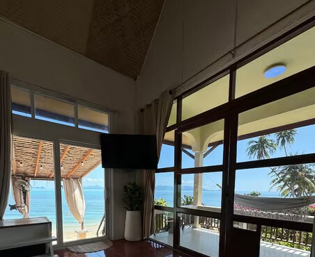 Possibilità di rumori a partire dal 26 aprile, poiché nella villa accanto inizieranno i lavori di ristrutturazione. Effettuando la prenotazione, gli ospiti accettano la presenza di rumori dovuti ai lavori di costruzione tutti i giorni dalle 8:00 alle 18:00. I prezzi sono stati ridotti per tenerne conto. Una rara opportunità di affittare questa villa sulla spiaggia su base mensile, solitamente affittata per soggiorni brevi. Vista su Bang Por Beach dalla veranda e dalla piscina. A pochi passi da ristoranti locali e internazionali. Ideale per il lavoro in smart working, con orari flessibili o fuori orario. Pulizia gratuita, Wi-Fi, Netflix, SUP, kayak e piscina.