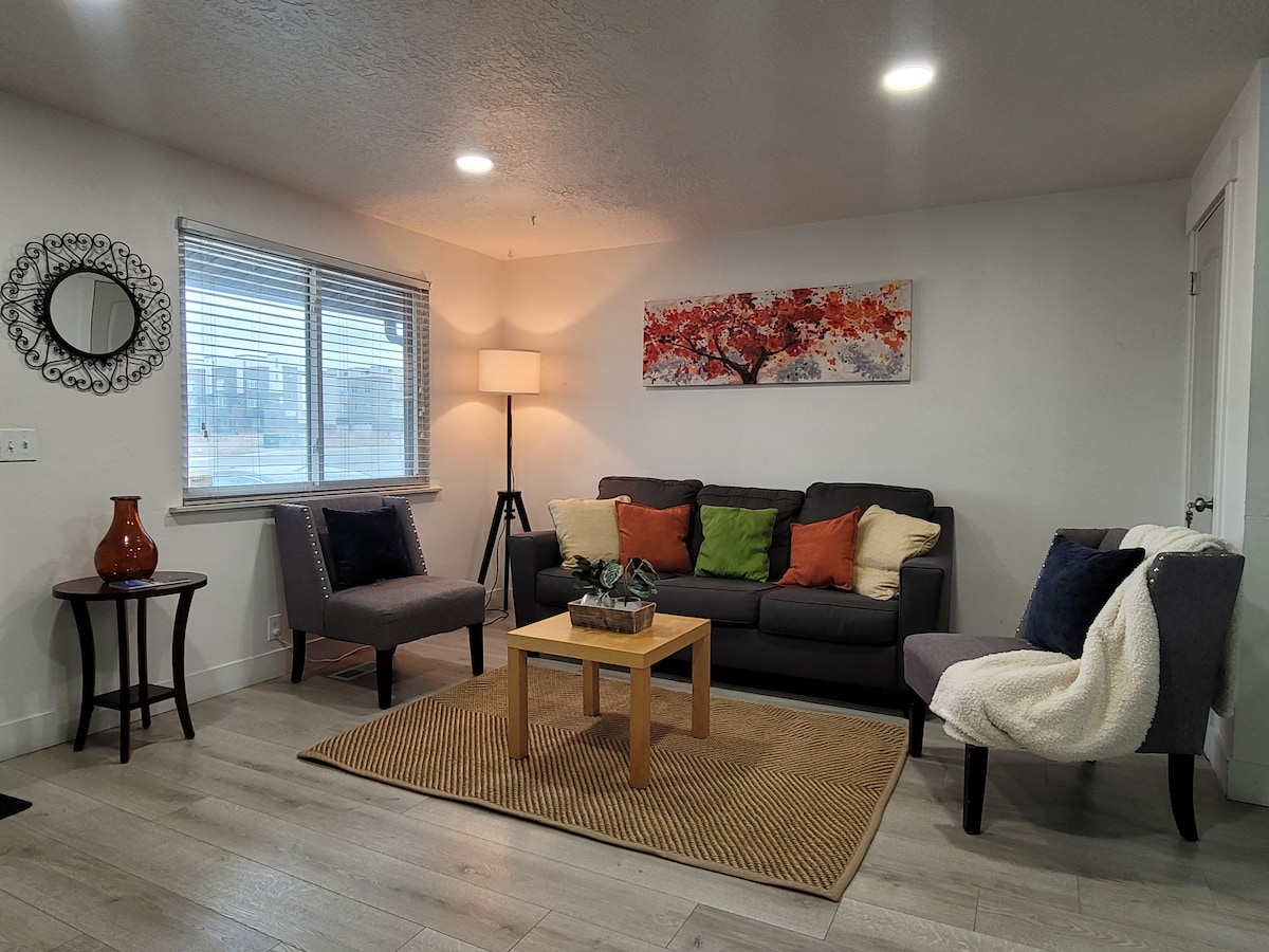 Siamo felicissimi che tu stia visitando il nostro annuncio. Abbiamo ristrutturato il nostro seminterrato per affittarlo a breve e lungo termine. Perfetto per un massimo di 4 ospiti. È un appartamento seminterrato bello, moderno e pulito a West Valley City, nello Utah. Tutto nuovissimo. Materassi in memory foam, elettrodomestici di alta gamma, piano di lavoro in granito, bagno piastrellato, lavatrice e asciugatrice nuove e altro ancora. Appartamento separato per la massima privacy. Io vivo al piano di sopra con mio marito, il bambino e il cagnolino. NESSUN SOGGIORNO. VEDI FOTO