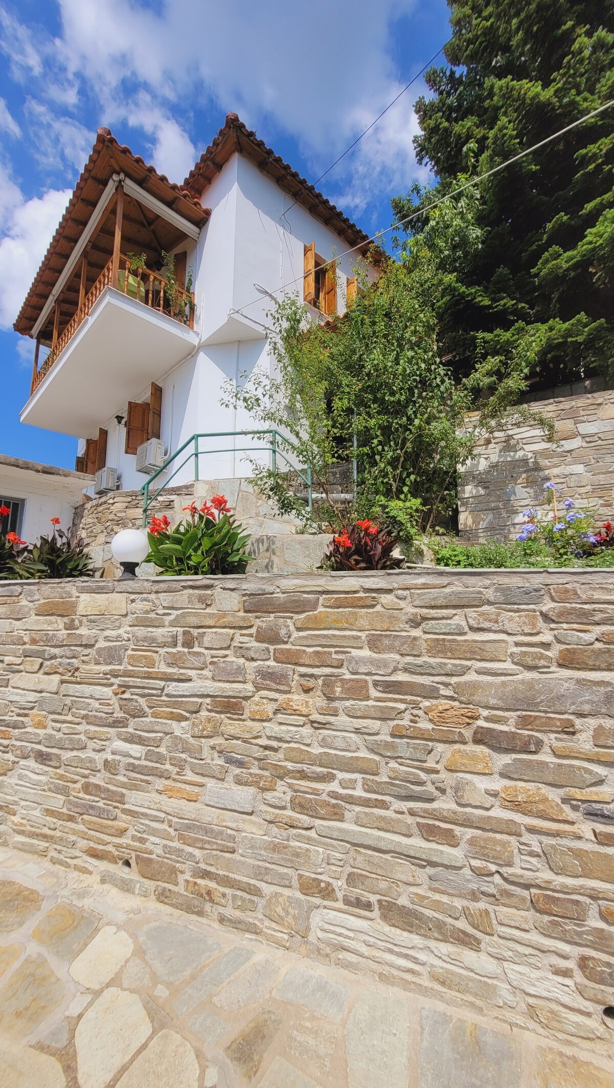 In una delle zone più tradizionali e belle del Pelio, Tsagarada, nascosta nella vegetazione e a pochi passi dalle spiagge più belle del Pelio (Milopotamos, Fakistra, Damouchari) la pensione è aperta tutto l'anno. Tradizionalmente arredato e spazioso, può ospitare fino a 12 persone. La rete stradale e il parcheggio privato facilitano l'accesso, mentre taverne, caffetterie e vari altri negozi assicurano che qualsiasi esigenza sia coperta. Coordinate: 39.381022, 23.178884