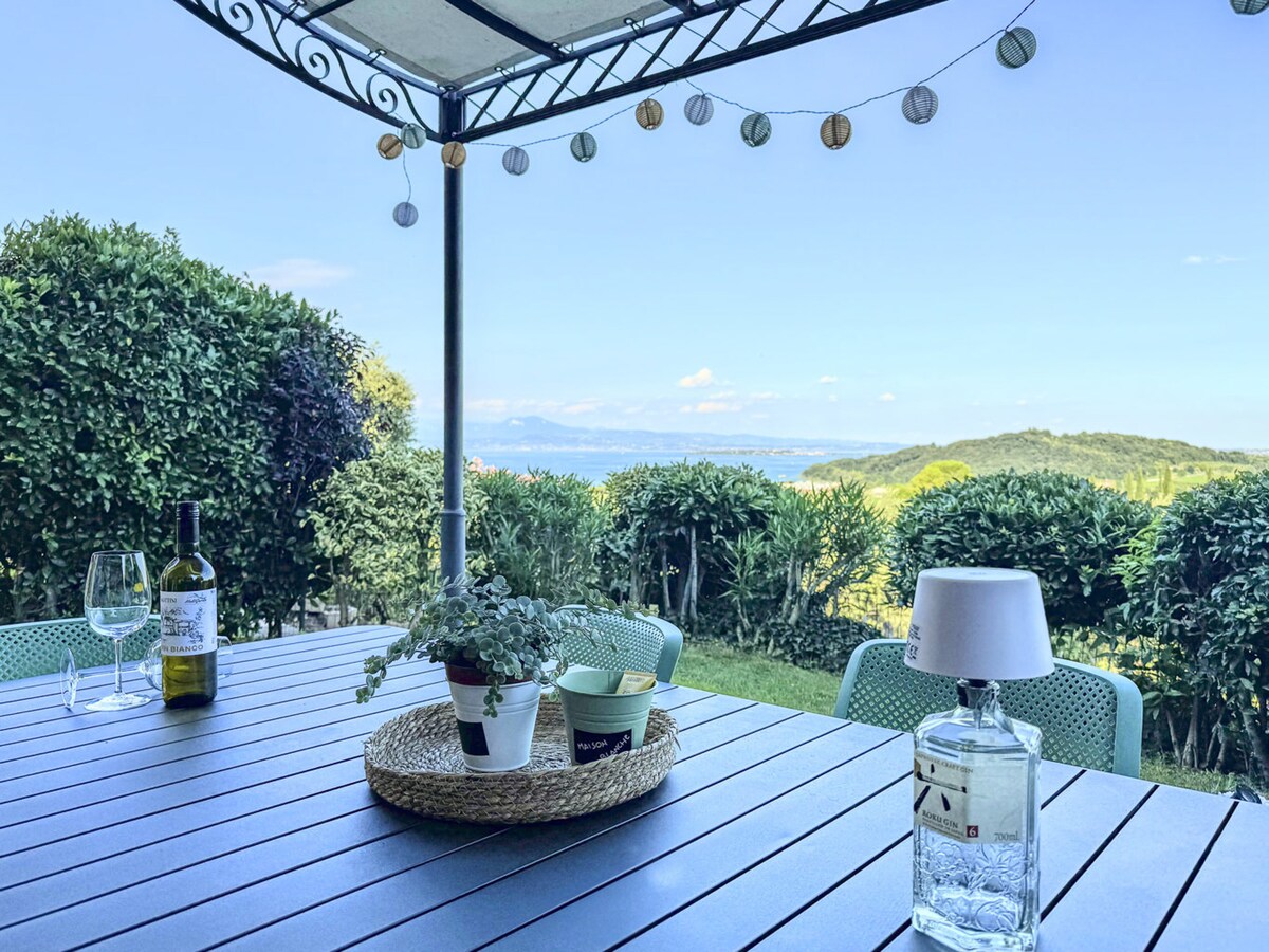 Luminoso e originale appartamento a pochi metri dal lago, con ampia terrazza su cui cenare e rilassarsi in zona relax circondati da simpatiche piante grasse. A 900 mt dal centro storico e a 100 mt dalla passeggiata che porta alle spiagge, zona tranquilla e residenziale. Parziale vista lago, sulle montagne e sul verde. Doccia spa con bagno turco e cromoterapia. Parcheggi gratuiti nella via. A 30 minuti da Gardaland. CIR: 017067-CNI-00733 CIN: IT017067C2DHAHOG7V