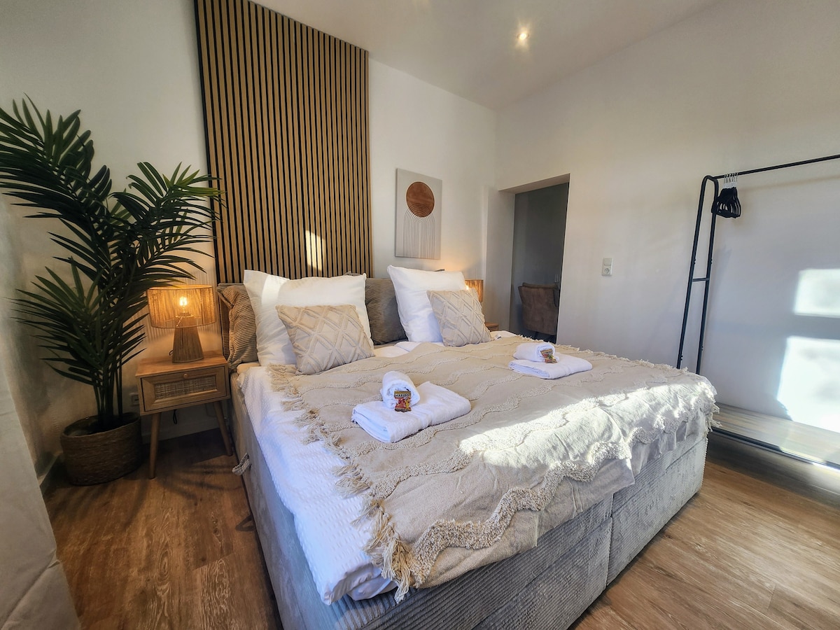 Loft di lusso moderno nuovo di zecca - a 3 minuti da Fulda Hbf - perfetto per affari e tempo libero! ✨ Cosa ti aspetta: Ingresso senza chiavi e parcheggio gratuito Wifi con fibra da 1 GB Smart TV da 65" (Netflix, Disney+) Cucina attrezzata Bagno di lusso con servizi premium Lavatrice/asciugatrice nel seminterrato, asciugamani freschi e articoli essenziali 📍 Posizione privilegiata: nel cuore della città, a pochi passi da ristoranti e attrazioni 💼 Facoltativo: accesso allo spazio di coworking (prenotabile separatamente a pagamento) 🎯 Ideale per: viaggiatori d'affari, nomadi digitali, coppie