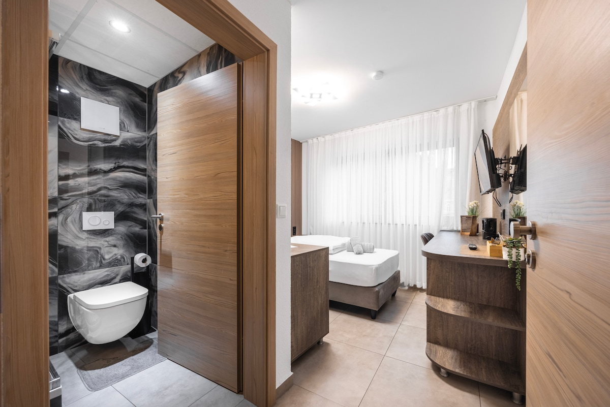 Piccola camera funzionale con bagno privato (senza doccia) – ideale per soggiorni brevi o per chi viaggia per lavoro. Posizione perfetta proprio sulla stazione centrale, a pochi minuti a piedi dal centro. Wi-Fi incluso, ambiente pulito e check-in semplice. Si prega di notare: per i check-in dopo le 21:00 è necessario il numero di prenotazione. Basta inserirli nel distributore automatico per ricevere la chiave magnetica.