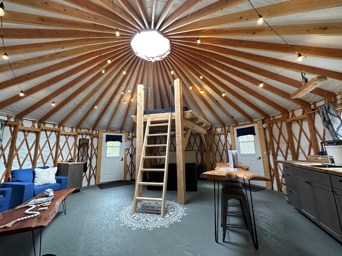 *Inviaci un messaggio per chiedere informazioni su possibili sconti* Benvenuti in questa indimenticabile fuga nella campagna del Maine. In un vecchio meleto abbandonato Un'esperienza unica che unisce comfort e natura, questa spaziosa iurta in pino offre una cucina completamente attrezzata, interni accoglienti, 2 camere da letto e WiFi. Immagina di sorseggiare un caffè sulla terrazza, serate stellate vicino al focolare e tanta aria fresca. Con fattorie locali e sentieri escursionistici nelle vicinanze, questa iurta di lusso è la base ideale per avventure all'aria aperta.