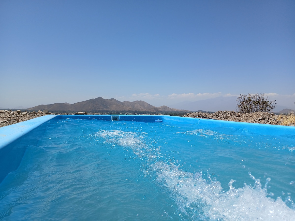 Entra in contatto con la natura in questa indimenticabile vacanza, con una splendida vista sulla valle del Maipo, con una vasca di acqua calda per tutta la notte ideale per la disconnessione, settore totalmente privato, include una vasca self-service, un sacchetto di legna e trucioli a disposizione, il prezzo pubblicato è per 2 ospiti, un extra di 7.500 pesos viene pagato per ogni ospite in più, ha anche un binocolo per l'esplorazione di uccelli e animali nella zona (650 metri di altezza)