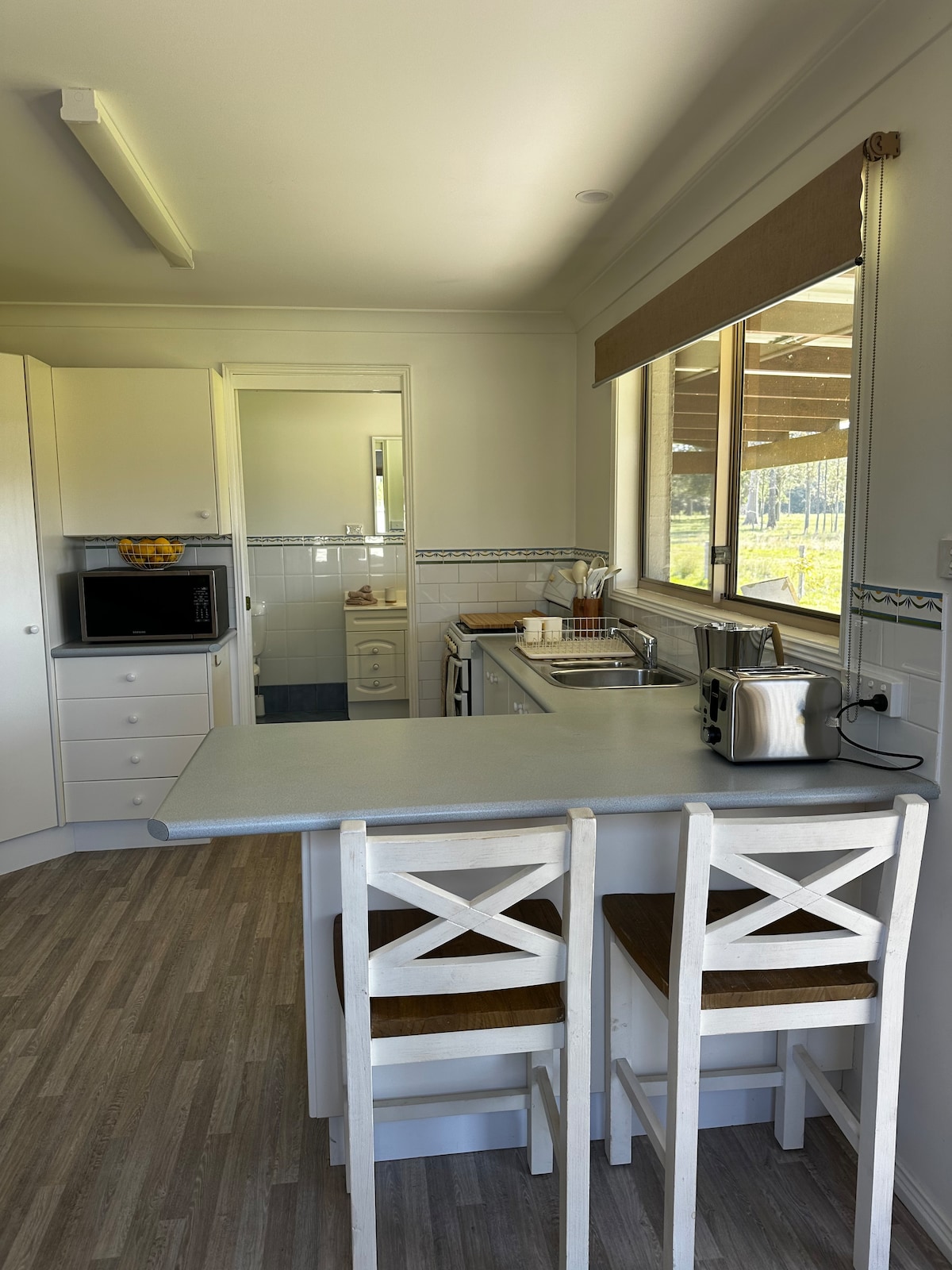 Svegliati all'alba con la nebbia che avvolge 32 ettari di canguri e uccelli autoctoni, poi raggiungi in 10 minuti di auto cantine, mongolfiere e go-kart. Questo agriturismo che accoglie gli animali domestici può ospitare nove persone in quattro camere da letto, tra cui una camera con letti a castello per bambini. Cani benvenuti. Tranquillità di campagna, comfort di città.