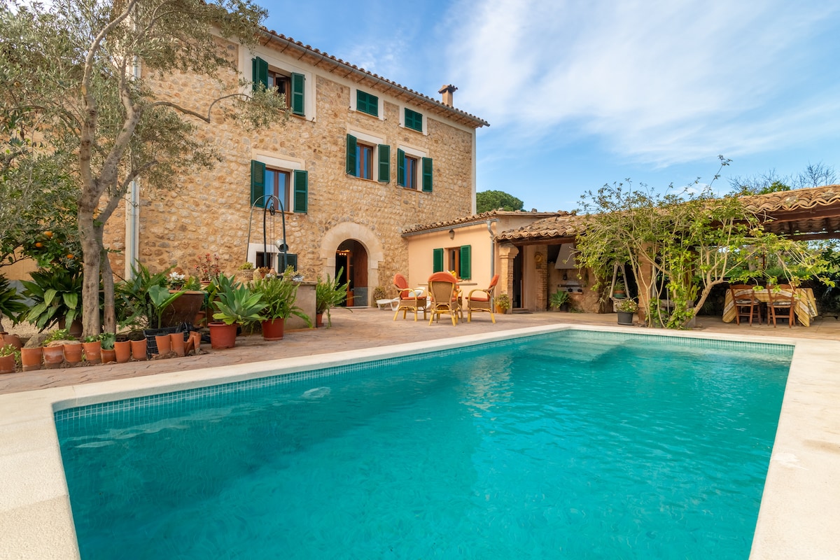 Ti offriamo la nostra meravigliosa casa situata nella Sierra de Tramuntana, circondata da montagne e natura mozzafiato. La casa si trova su un terreno di 2.000 metri e dispone di piscina, ampie terrazze e diversi spazi per rilassarsi e godersi la zona tranquilla e i suoi paesaggi. L'arredamento è accogliente e la casa molto confortevole; offre molti extra, per non farti mancare nulla. Ti auguriamo un piacevole soggiorno, come a casa tua.
