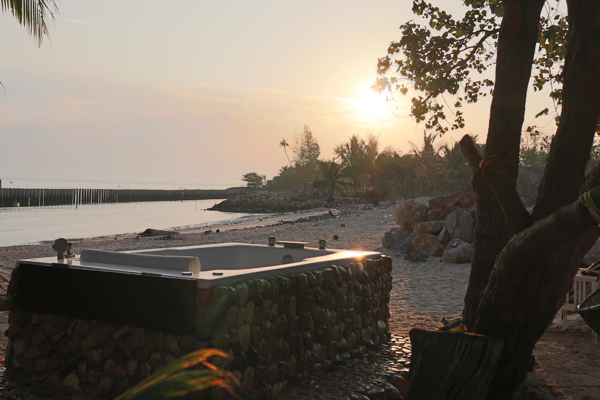 La casa in legno si trova in un giardino sul fiume circondato dalla natura. Goditi l'aria fresca e pulita. Atmosfera tranquilla, silenziosa e privata. A disposizione degli ospiti biciclette gratuite per girare nel giardino e nella zona circostante. Puoi contattare un taxi per viaggi e visite turistiche e per andare all'aeroporto, al porto e ad altre isole. Non ci sono mezzi pubblici o ristoranti nelle vicinanze, ma puoi chiamare Grab Car e Grab Food per la consegna. La colazione è disponibile a pagamento. Comodo per chi guida o noleggia un'auto. Parcheggio gratuito. A circa 20 minuti dall'aeroporto e dalla città.