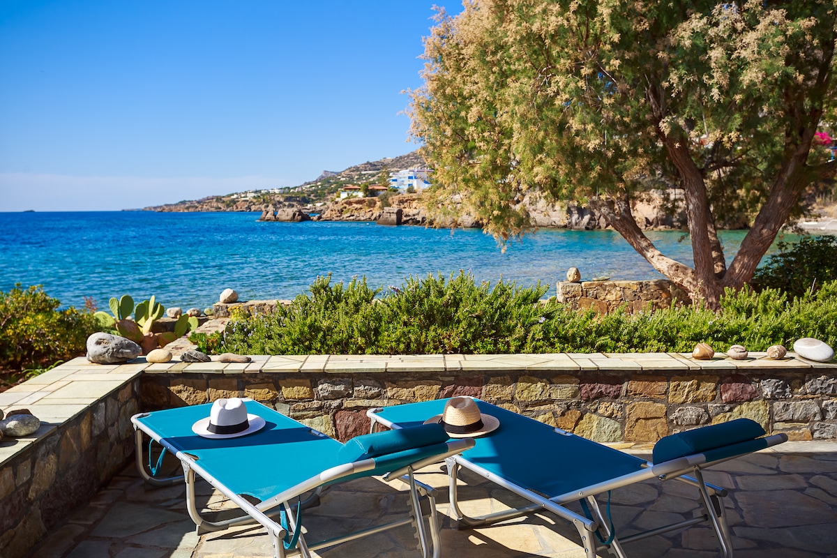 Crete Villa By The Sea unique 3 bedroom house, located in the traditional archiological village of Mochlos with amazing breathtaking sea view, just few steps from the beach as well as our village known excellent Taverns. Best Cretan cuisine, a variety of local delicious dishes, fresh fish, seafood, vegetable, café & bars. Just grab your towel and walk out from the house down to the beach. Suitable for couples, solo adventurers, and families. Free wi fi, 1 hour & 15 min drive from Heraklion.
