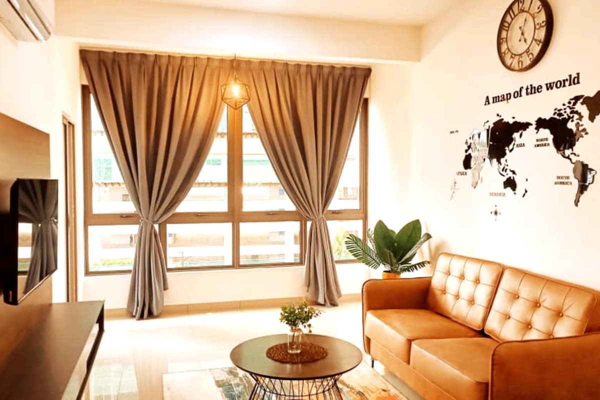 Quante persone possono soggiornare qui: L'appartamento può ospitare 4 persone, ma è comunque confortevole per 6. Si trova nel cuore della città di Melaka e a soli 3 km dallo storico edificio A'Famosa e dall'edificio Studthuy. Servizi: Parcheggio GRATUITO per 1 auto al 2° piano. Altre persone possono parcheggiare al piano terra. Elenco dei servizi forniti all'interno della casa: Questo elegante appartamento è dotato anche di 2 letti matrimoniali e 1 divano letto pieghevole matrimoniale, 1 WC aggiuntivo, TV LED da 60 pollici con Android, wifi, ecc.