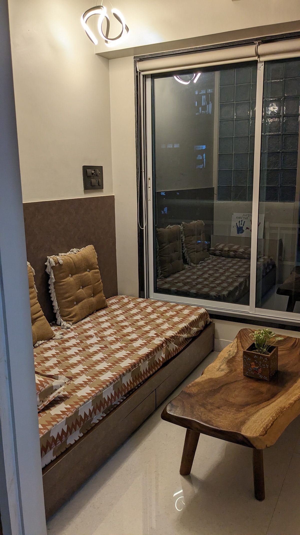 Ti diamo il benvenuto al The Japandi Garden, una suite executive situata nel prestigioso Omkar Signet, Malad. Scopri il perfetto equilibrio tra minimalismo giapponese e calore scandinavo in questo tranquillo appartamento con 2 camere da letto. Situato proprio accanto alla Western Express Highway (WEH), siamo perfettamente posizionati per i viaggiatori d'affari che partecipano a eventi presso il NESCO (Bombay Exhibition Centre) o per i viaggiatori che necessitano di un rapido accesso all'Aeroporto Internazionale di Mumbai.