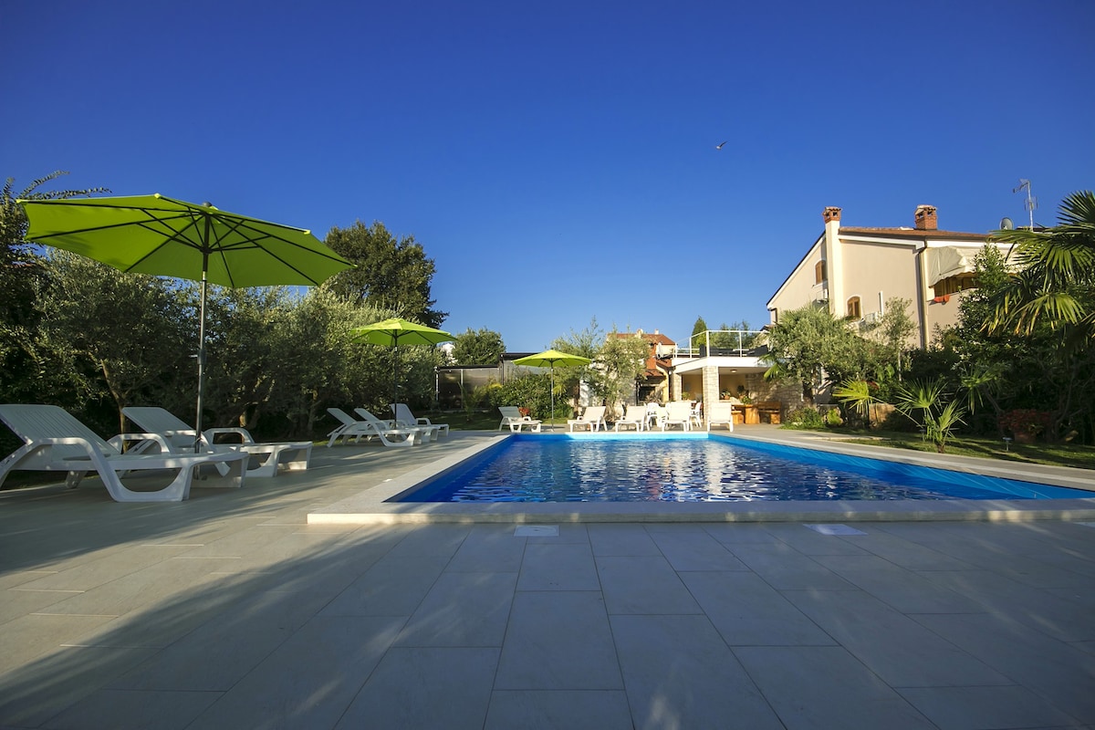Villa GreenBlue je moderna i luksuzno namještena kuća za odmor sa bazenom smještena na mirnoj lokaciji svega 2 km od centra Poreča te isto toliko od mora. Kuća se nalazi na osami, okružena je livadom i šumom iz koje će na livadu nerijetko "navratiti" njeni znatiželjni stanovnici, srne i divlji zečevi. Kuća je smještena na ograđenoj okućnici koja je na raspolaganju samo gostima kuće a na kojoj se nalazi veliki bazen površine 50 m2, vanjski whirlpool, finska sauna i roštilj.