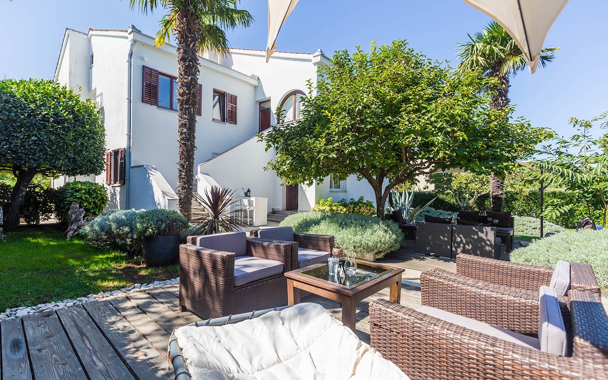 Discover serenity in our charming one-bedroom apartment nestled in the heart of Porec. Immerse yourself in the tranquility of a lush garden adorned with vibrant flowers and olive trees, while enjoying the convenience of being in the city center and a mere 5-minute stroll from the beach. Your stay comes complete with all modern comforts and we even provide two bicycles for you to effortlessly explore the surrounding area. Welcome to your perfect retreat!