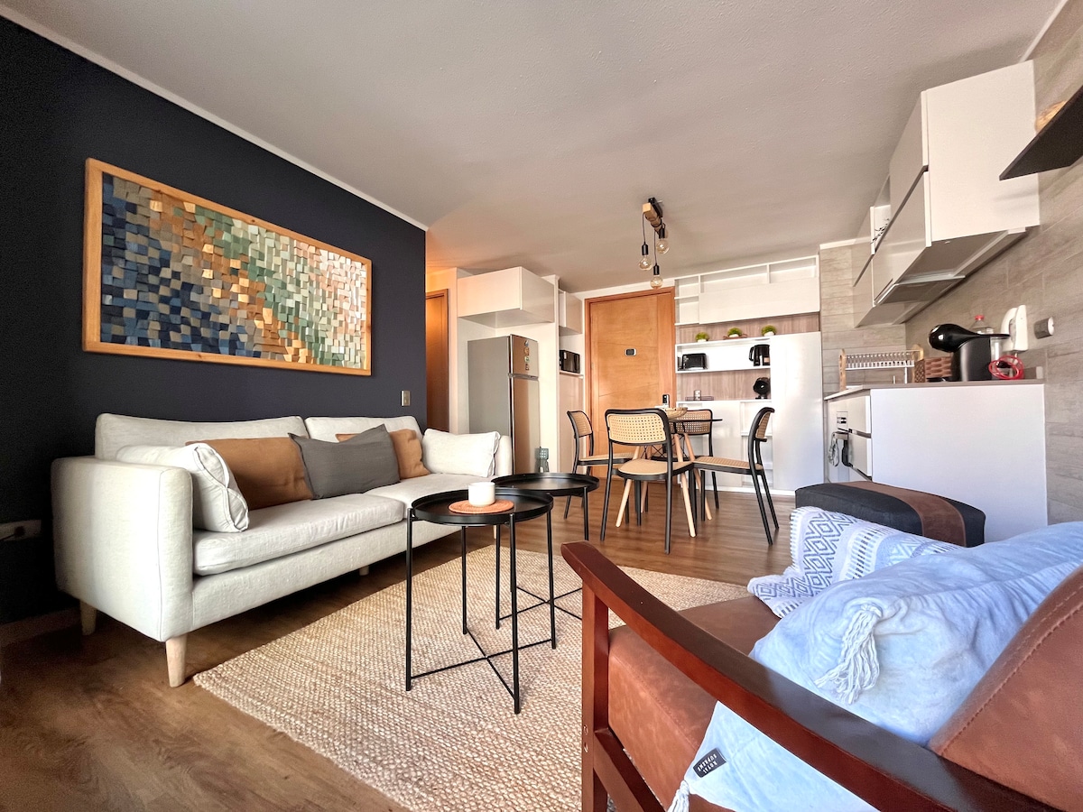 Comfort e stile in una posizione fantastica. Nuovo appartamento, arredato con gusto e dettagli che ti invitano a sentirti bene. Dispone di terrazza e vista sulle montagne, parcheggio, due camere da letto, scrivania, aria condizionata, WiFi veloce, Smart TV, cucina completamente attrezzata e palestra. Situato a Ñuñoa, una zona tranquilla e sicura, a pochi passi dalla metropolitana e dal centro commerciale Plaza Egaña, circondato da gastronomia, negozi, cliniche e servizi. Ideale per viaggiatori esigenti che desiderano riposare, lavorare comodamente o esplorare Santiago!