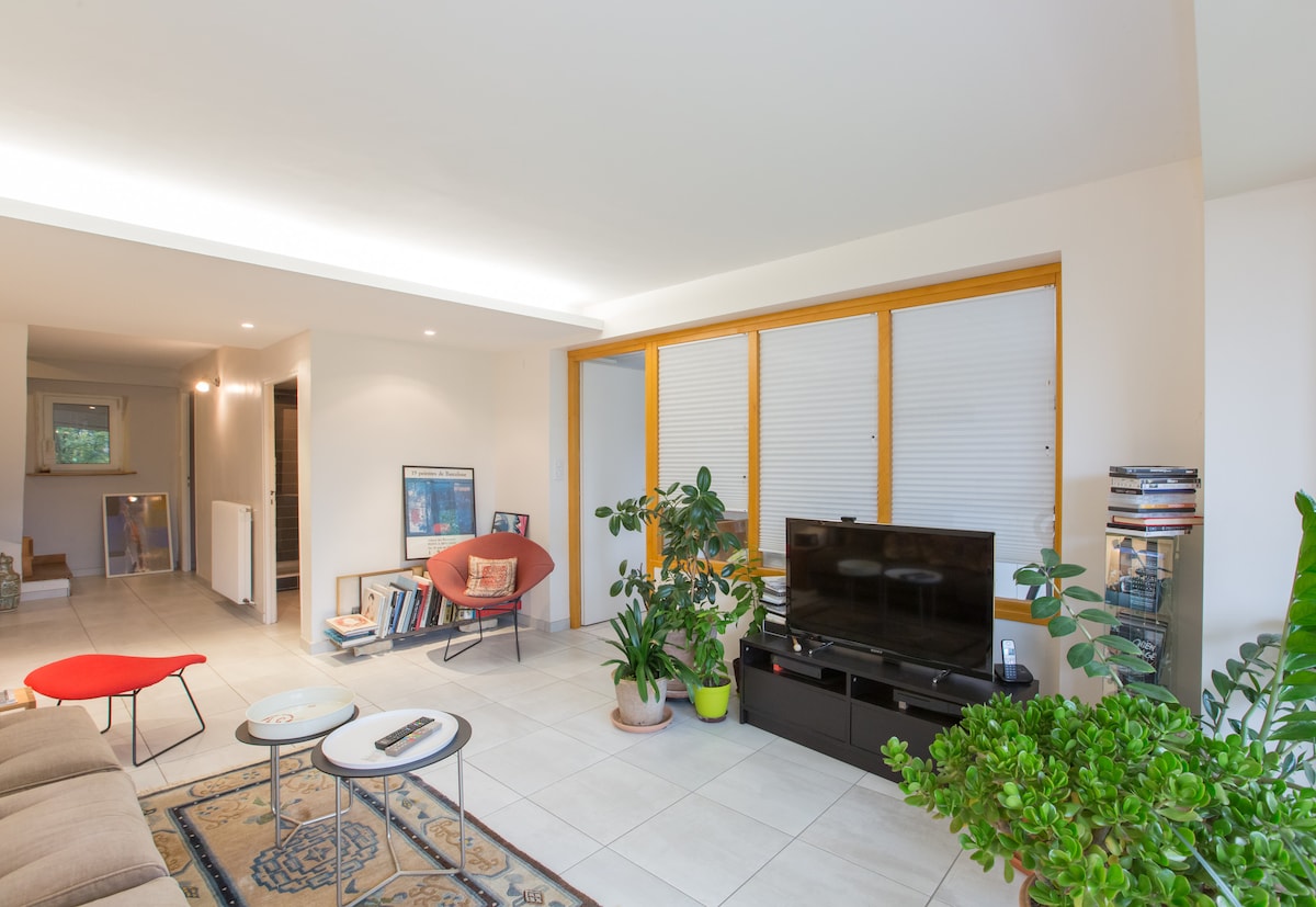 NON FUMATORI ALL'INTERNO E ALL'ESTERNO (anche nella nostra strada!). Non accettiamo viaggiatori senza recensioni e quelli con una valutazione inferiore a 5/5. Sulle alture di Malzéville, al piano terra della nostra casa, bilocale con ingresso indipendente composto da soggiorno/cucina, camera da letto con doccia, lavanderia e servizi igienici. Grande terrazza coperta. Quartiere tranquillo, parcheggio facile sulla strada. Vicino a Place Stanislas (5-7 minuti in auto).
