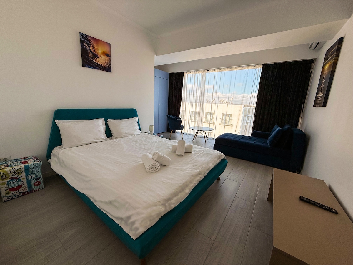 Il modo migliore per vivere la bellezza di Costanza è stare nel suo cuore! Il monolocale si trova a soli 10 minuti dal resort Mamaia e a 2 minuti da City Park Mall, Tabararia Lake, Dolphinarium, McDonalds e Holiday Village. Potrai goderti le giornate di sole sulla spiaggia e i servizi quali: cucina completamente attrezzata, Smart-TV, cabina doccia ma anche altri servizi essenziali che disattiveranno il tuo soggiorno in un meraviglioso ricordo!