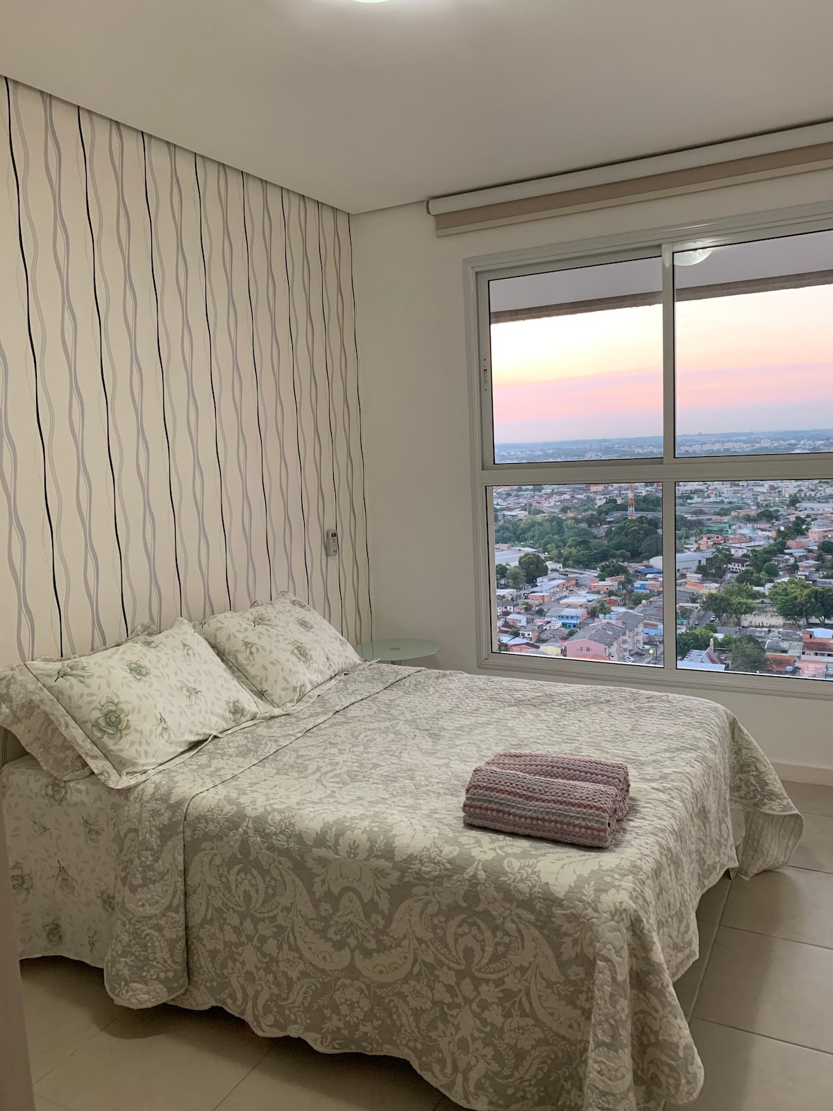 Aconchegante cobertura dúplex com uma vista linda de Manaus. O apartamento é novo e todo equipado: temos lençóis, toalhas, sabonete líquido, geladeira, fogão, máquina de lavar roupa, ferro de passar e WI-FI. Além de uma varanda com churrasqueira com o pé direito alto para apreciar o pôr-do-sol. Os 3 quartos com ar condicionado ficam no andar superior. No andar inferior está a cozinha, varanda e uma sala com ar condicionado e um sofá da cama. Venha e se sinta em casa.
