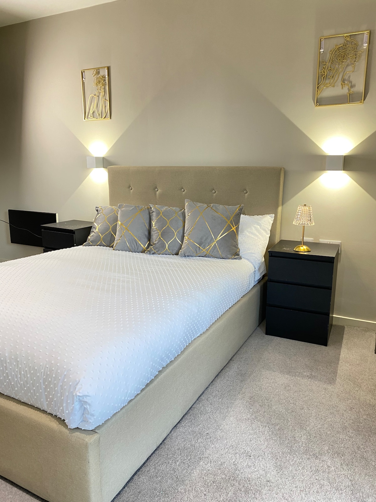 Vivi il lusso in questo splendido appartamento con 2 camere da letto, ideale sia per soggiorni di piacere che di lavoro. Dispone di camere da letto spaziose, due bagni moderni, una cucina completamente attrezzata e un elegante soggiorno e zona pranzo. Rilassati sul balcone privato e goditi i servizi premium. Situato in una zona privilegiata, questo elegante rifugio può ospitare fino a 6 persone, garantendo comfort e un soggiorno indimenticabile. Parcheggio a pagamento disponibile a soli 7£ ogni 24 ore.