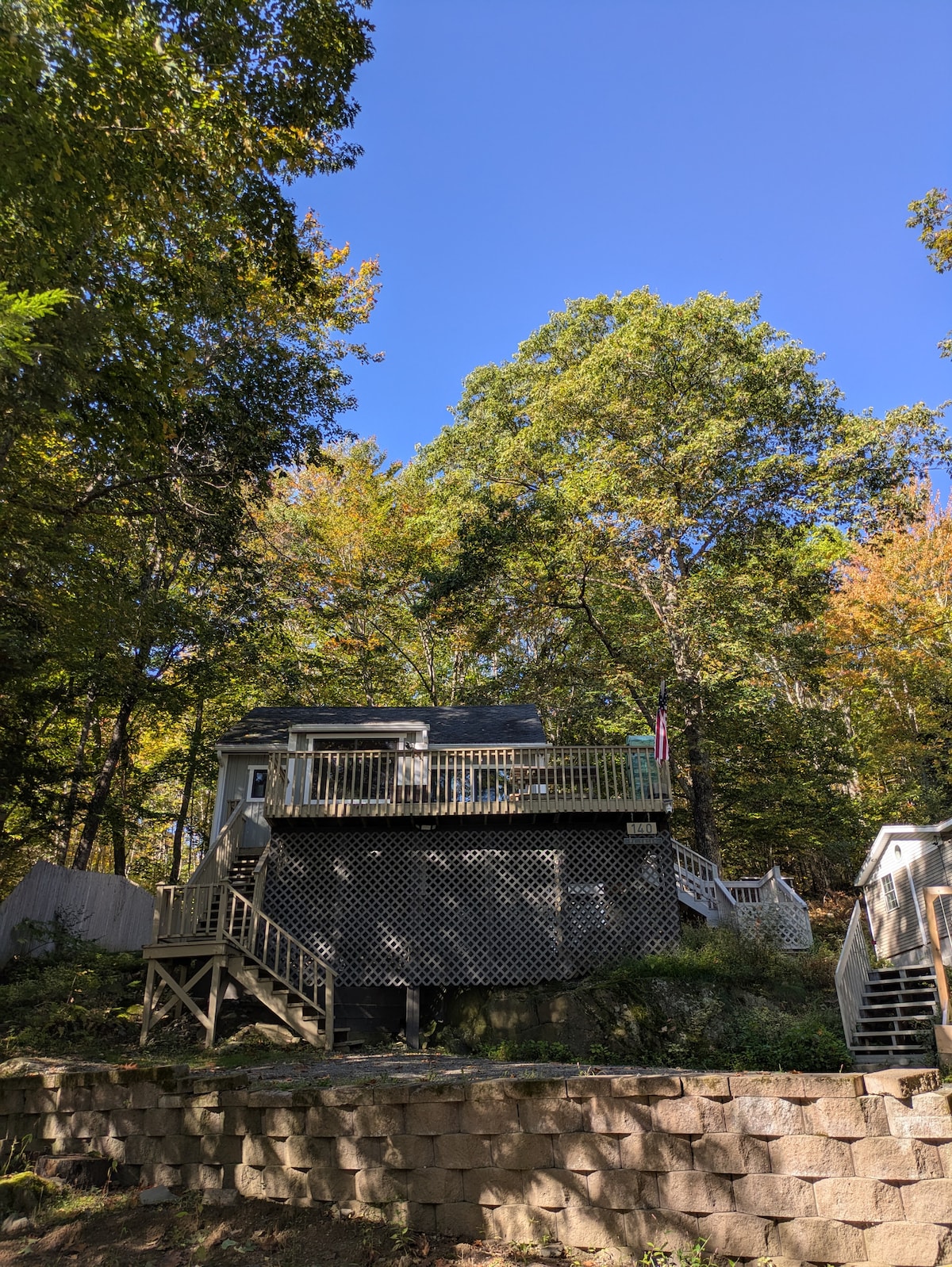 Fuggi in una lussuosa baita sul lungomare con pareti in vetro e design personalizzato, situata su oltre 3 ettari di terreno appartato lungo il Crooked River a Naples, nel Maine. Il fiume circonda la proprietà, offrendo totale privacy, una spiaggia sabbiosa privata, un molo con accesso diretto al lago Sebago e un parco statale a pochi minuti di distanza. Rilassati tutto l’anno nella vasca idromassaggio, sotto la doccia esterna, sulle amache o davanti al caminetto con vetro trasparente. Bagno Luxe con pavimenti riscaldati, ampia cabina doccia con finestra panoramica. Aria condizionata, animali domestici ammessi. Rifugio perfetto e tranquillo: vieni a ricaricarti!