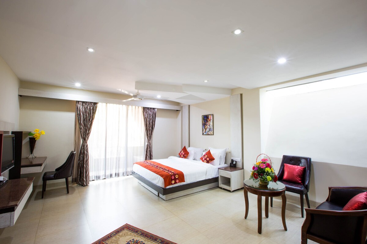 Welcome to this luxury studio for 4 with pool in our boutique hotel that combines style with simplicity to give you that ‘at home’ feeling you crave. With a cozy room and large comfy bed you’d love to sink into, delicious food and visual delights everywhere, This studio promises to capture not only your eyes but your heart. Located in the heart of North Goa 5 mins from Mall De Goa all other hot spots including beaches, party spots, historic places etc are at a distance of approx 5-15 kms.