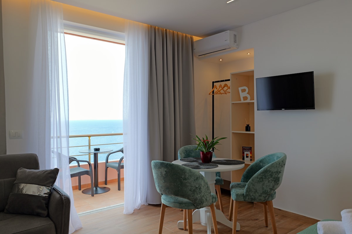 Cerchi un appartamento in affitto a Saranda Albania? La tua missione finisce qui. Immergiti nel lusso e nel comfort del nostro splendido appartamento a Saranda, che testimonia le migliori opportunità di affitto in Albania. Offrendo una vista accattivante sia sulla vivace città che sulle acque incontaminate del mare Adriatico, questo appartamento, con una camera da letto e un bagno, funge da accesso idilliaco alle miriadi di esperienze che l'Albania vanta.
