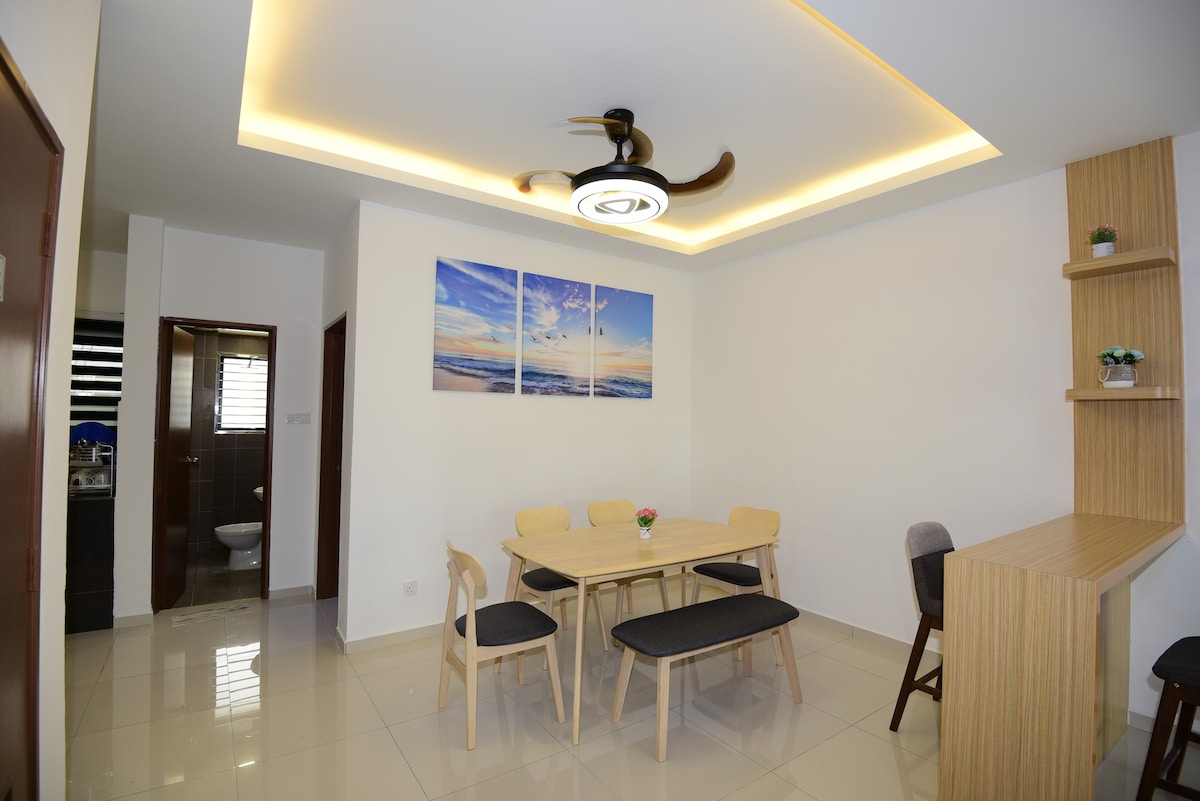 Dotato di sistemazione con aria condizionata e balcone. La casa vacanze dispone di 4 camere da letto, una TV a schermo piatto con canali satellitari, una cucina attrezzata e una lavatrice. Gli ospiti che desiderano viaggiare con leggerezza possono anche utilizzare gli asciugamani e le lenzuola con un supplemento aggiuntivo. Una terrazza è a disposizione degli ospiti presso la casa vacanze. Isola di Pangkor: 16 km Lumut: 16 km Mercato mattutino: a 100 metri