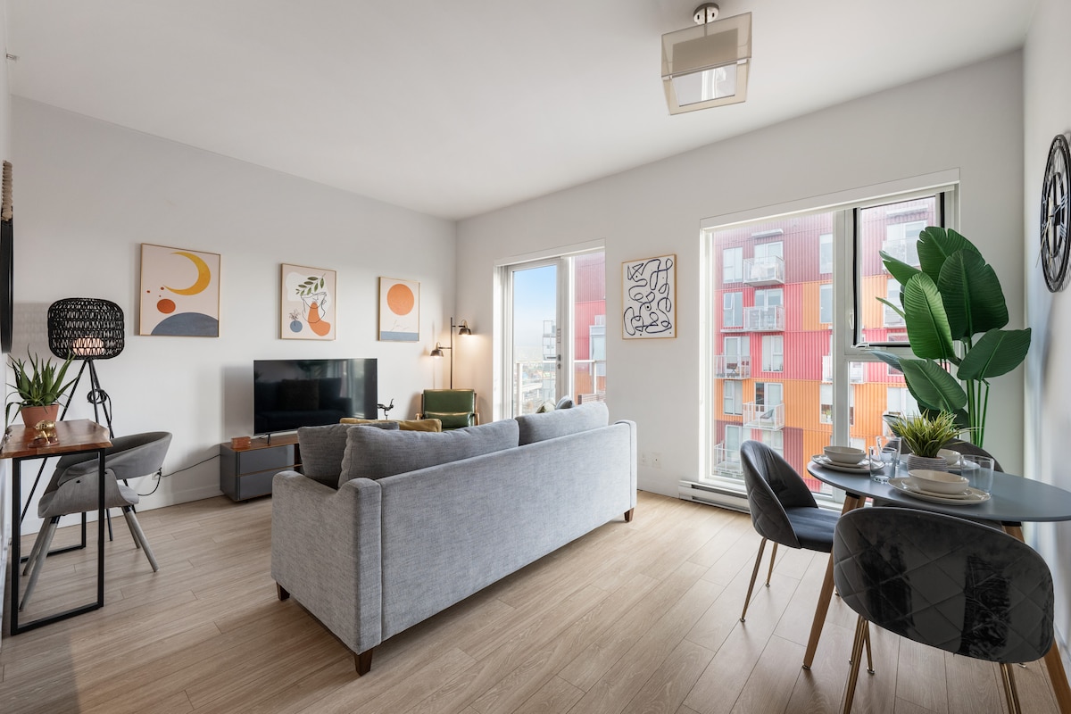 Ti diamo il benvenuto nel tuo nuovo luogo di vacanza preferito! Questo elegante appartamento offre quanto segue e altro ancora... • 1 letto matrimoniale e finestre a tutta parete in camera da letto • Divano letto per 2 persone in soggiorno •Cucina completamente attrezzata con macchina Nespresso! •Bagno dotato di articoli da toeletta di base per la tua comodità •Balcone privato • Luce naturale ovunque •Posizione privilegiata, vicino al centro di Lougheed, dove troverai tanti negozi e ristoranti, persino una palestra! • A 8 minuti a piedi dalla stazione della metropolitana • Edificio nuovo e sicuro
