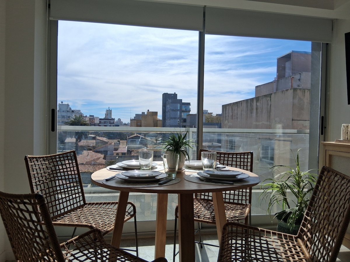 Disfrutá de este alojamiento tranquilo en pleno centro, ubicado en un noveno piso por ascensor, luminoso, lejos del ruido, donde podrás tener un buen descanso. Con patio propio y parrilla . A tres cuadras de la playa, peatonal, teatros y del Casino Central. Todo a estrenar!