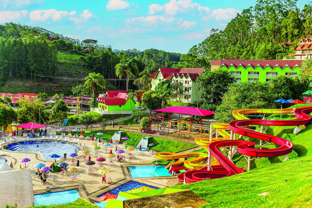 Alloggio di montagna completamente attrezzato! Ideale per gruppi e famiglie, può ospitare comodamente fino a 16 persone in tutta privacy. Dispone di 4 camere da letto (3 con bagno privato), 5 bagni, un soggiorno e una cucina a pianta aperta e Wi-Fi in tutte le aree. Un punto di forza è l'area gourmet con barbecue, spillatore di birra, tavolo da biliardo, biliardino e vasca idromassaggio riscaldata. Posizione eccellente, vicino al centro di Vila Araguaya e con facile accesso ai negozi e alle attrazioni locali. 👉 Elevata domanda per i gruppi: assicurati la tua data prima che venga prenotata.
