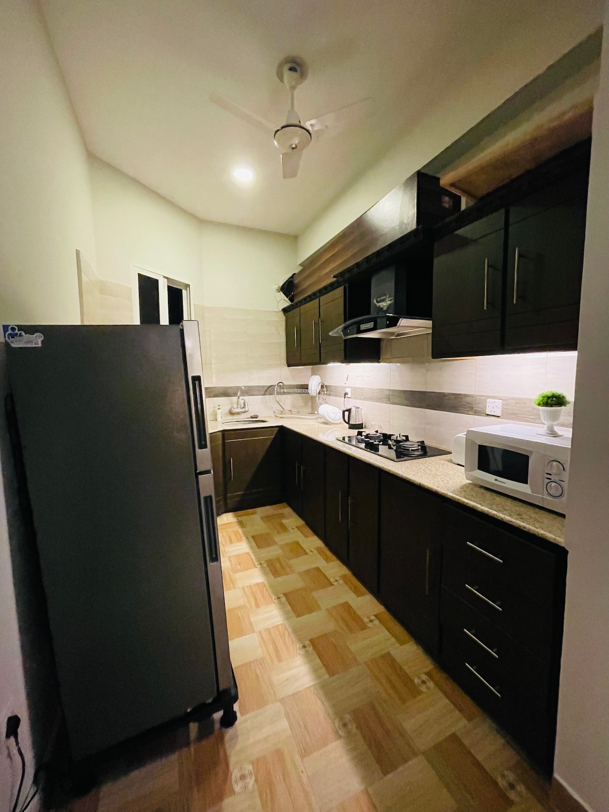 Ti diamo il benvenuto a The Minimalist 3, un elegante appartamento appositamente costruito, perfetto per chi viaggia da solo o in coppia. Questo spazio compatto dispone di un'accogliente zona giorno, un angolo cottura completamente attrezzato e un letto matrimoniale grande. Situato al piano terra con accesso privato, l'appartamento offre comodità e privacy. Goditi l'ingresso sicuro con una serratura a tastiera intelligente e l'alimentazione ininterrotta con un gruppo di continuità, il tutto nel vivace F-10 Markaz, Islamabad.