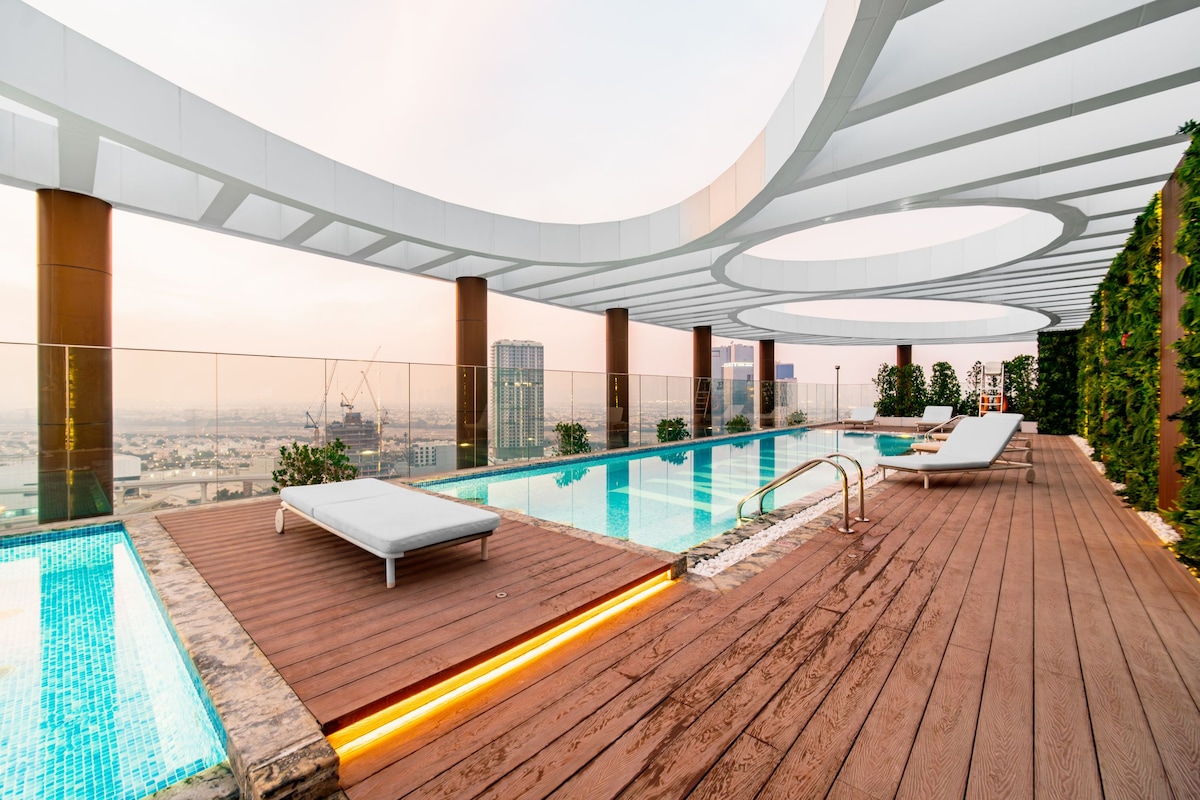 Cerchi un alloggio elegante, accogliente e conveniente a Dubai? Questa è la tua casa lontano da casa. Perfetto per soggiorni a lungo termine, nomadi digitali e viaggiatori con budget limitato a Dubai. Soggiorno moderno e conveniente a Dubai con piscina, palestra e WiFi ad alta velocità , combinato con pulizia giornaliera per garantire un soggiorno pulito e confortevole. Situato vicino all'aeroporto DXB, con facile accesso al centro di Dubai, al Dubai Creek Harbour e alla Dubai Healthcare City.