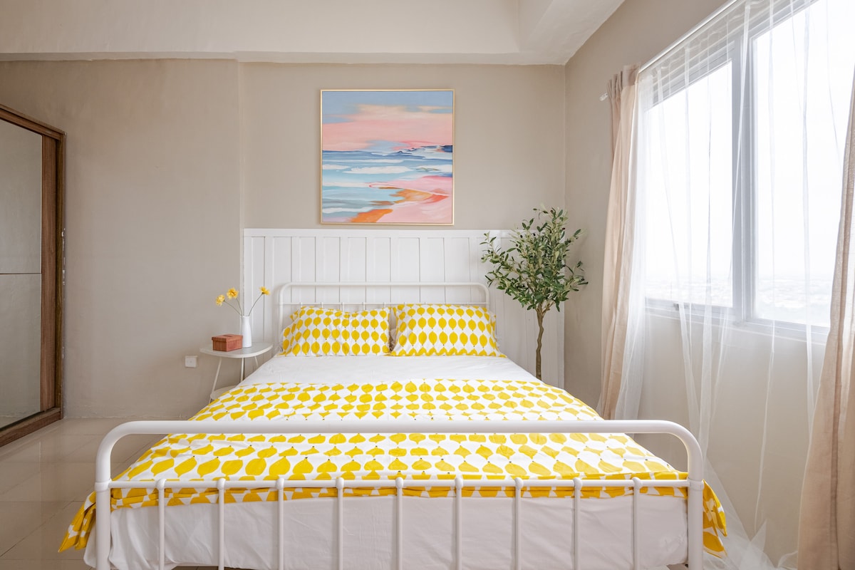 Rilassati e rilassati in questo spazio calmo ed elegante arredato con un monolocale di mobili di ispirazione IKEA nel cuore di Depok, direttamente collegato a Depok Town Square e vicino a Universitas Indonesia, Margo City e alla stazione ferroviaria di Depok Baru per un facile accesso a Giacarta. Goditi un soggiorno confortevole e conveniente! *Questo alloggio è più adatto a chi viaggia da solo, agli studenti o alle famiglie. Chiediamo gentilmente alle coppie non sposate di non prenotare questo alloggio.